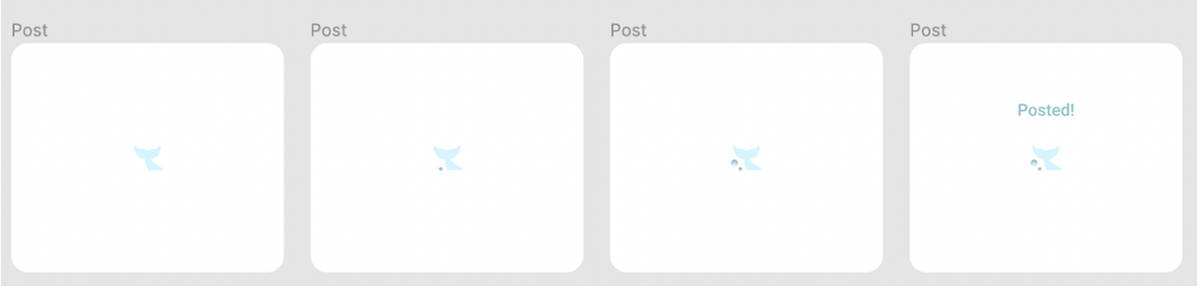 Also below are screens of the home feed, the pop-up when composing a post, and the pop-up when the post is ready to be published.