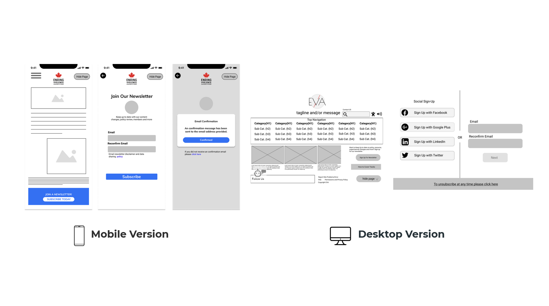 I worked with another UX Designer when designing visual components and when testing iterations for both the mobile and desktop versions of the EVA redesign.