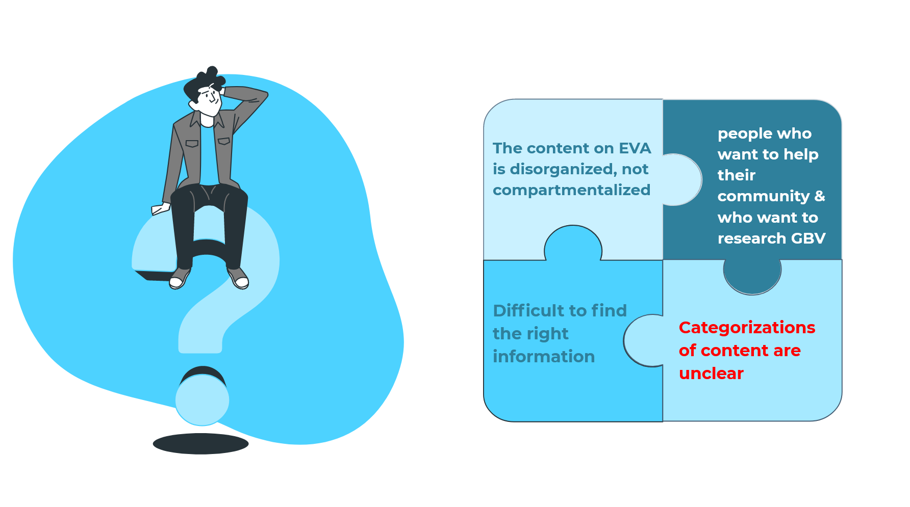 1. 55% of users found searching for help to be the biggest challenge on the existing EVA website.